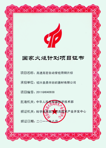 浙江鼎豐紡織器材有限公司始建于1986年,是一家專(zhuān)業(yè)生產(chǎn)各類(lèi)無(wú)梭織機(jī)用鋼筘:噴氣筘、噴水筘、劍桿筘、其他類(lèi)型鋼筘;鋁合金綜框、鋼片綜、停經(jīng)片、經(jīng)軸、織軸、卷布輥等產(chǎn)品及配件的民營(yíng)企業(yè)。